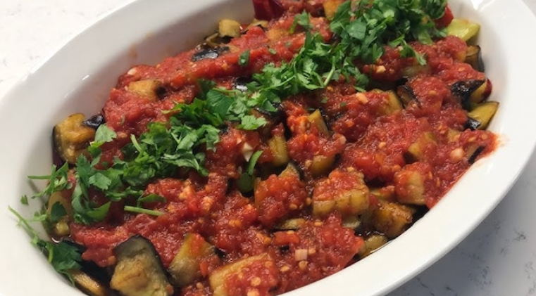 Kızarmış sebzeler üzerine domates sosu ile hazırlanan, Anadolu'nun nefis mezesi.