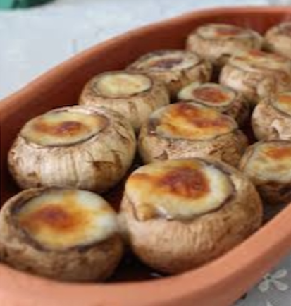 Fırında erimiş kaşar peyniriyle bütünleşmiş, sıcak ve nefis mantar dolması.
