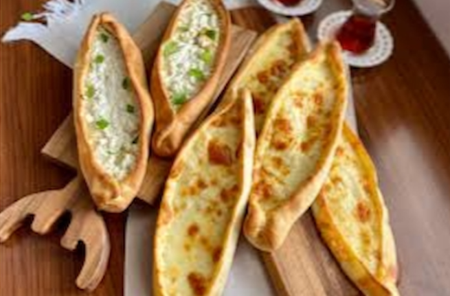 Küçük boy hamur üzerinde bol peynirle hazırlanan sıcak ve doyurucu pide.
