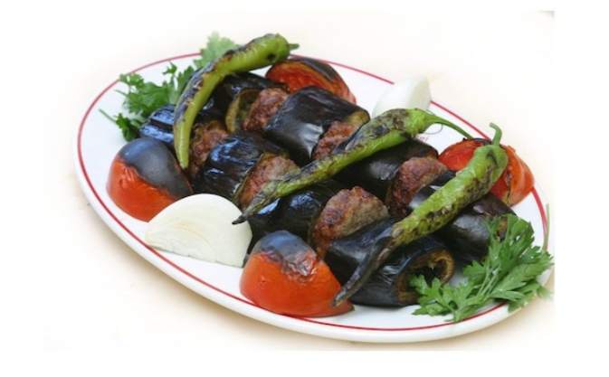 Közlenmiş patlıcan ve dana kıymanın şişte birleştiği geleneksel ve nefis kebap.