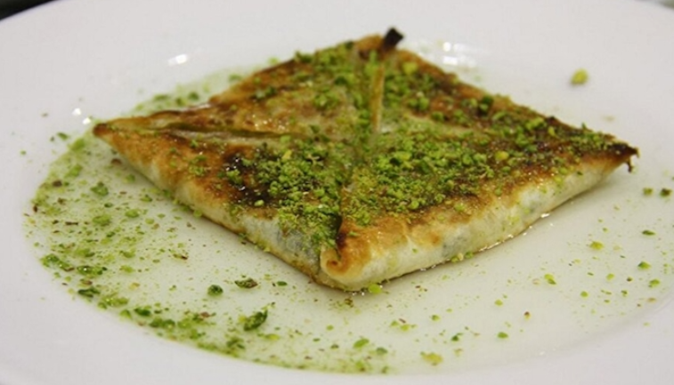 İnce açılmış hamur arasında kaymak ve fıstıkla hazırlanan Gaziantep'in özel tatlısı.