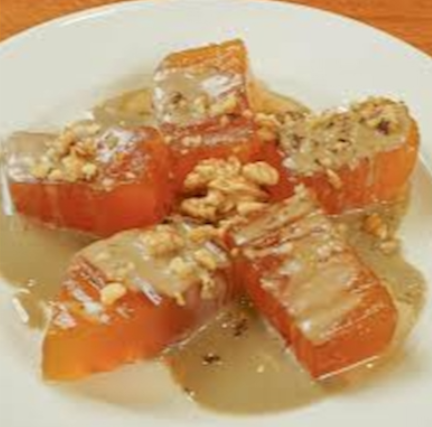 Şerbetle buluşan kabak dilimleri, ceviz ve kaymakla sunulan çıtır tatlı.