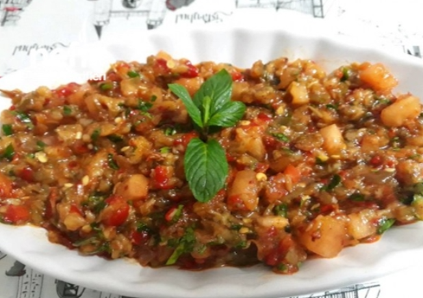 Közlenmiş patlıcan ve biberin yoğurtla buluştuğu, nefis aromalı geleneksel meze.